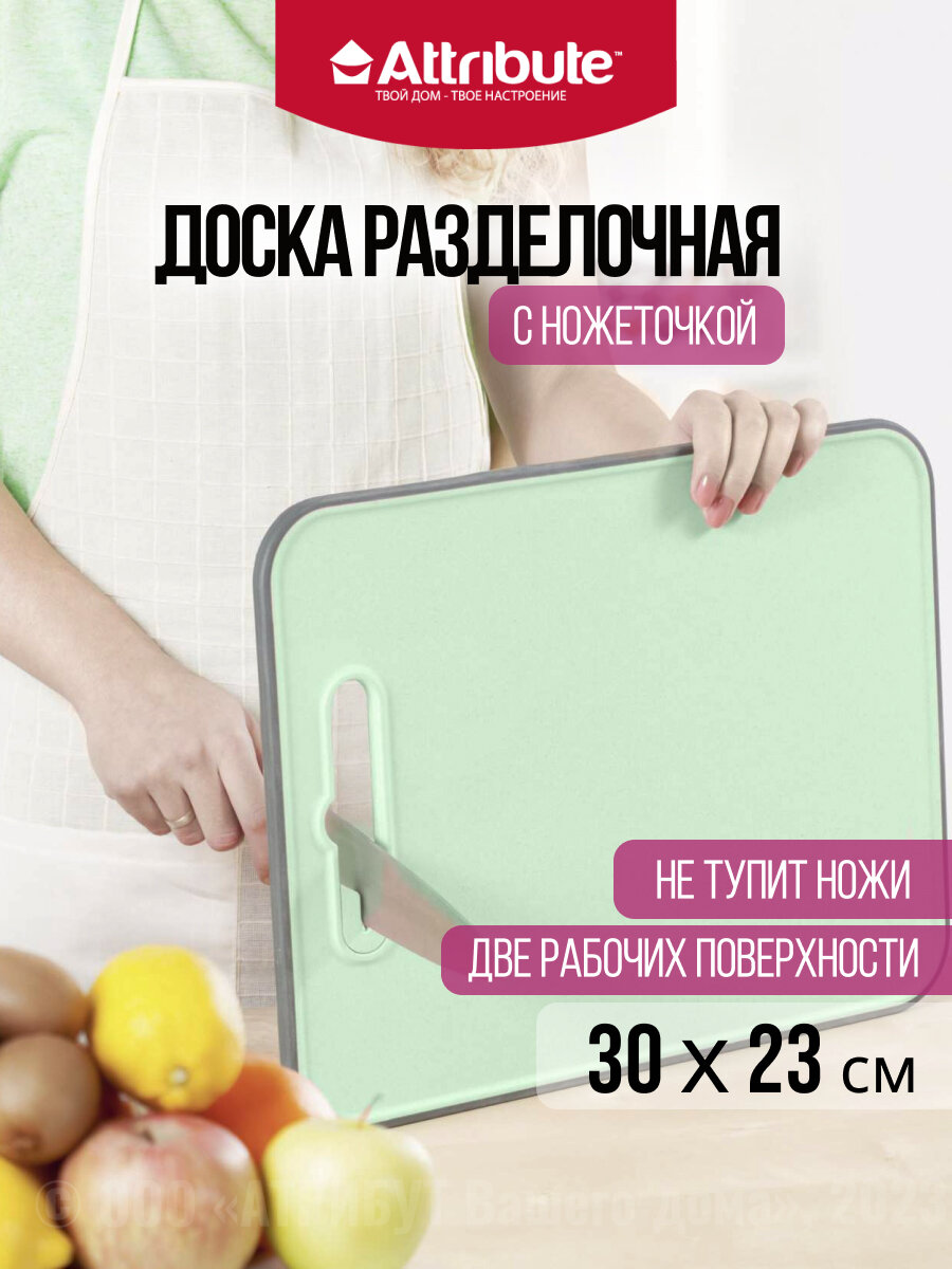 Купить Доска разделочная ATTRIBUTE CUT.BOAR FIBER mint 30х23см с ножеточкой