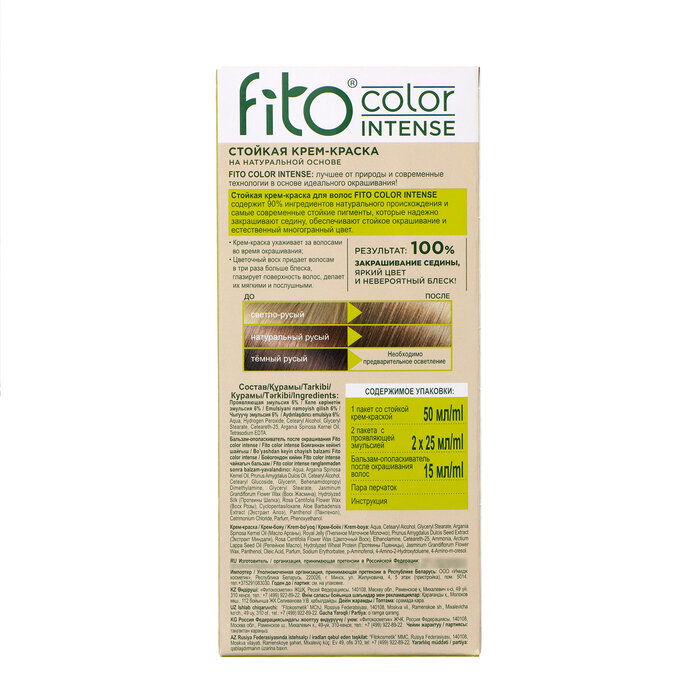 Стойкая крем-краска для волос Fito Color Intense, 7.0 Светлый русый Fito Косметик, 3 шт по 115 мл
