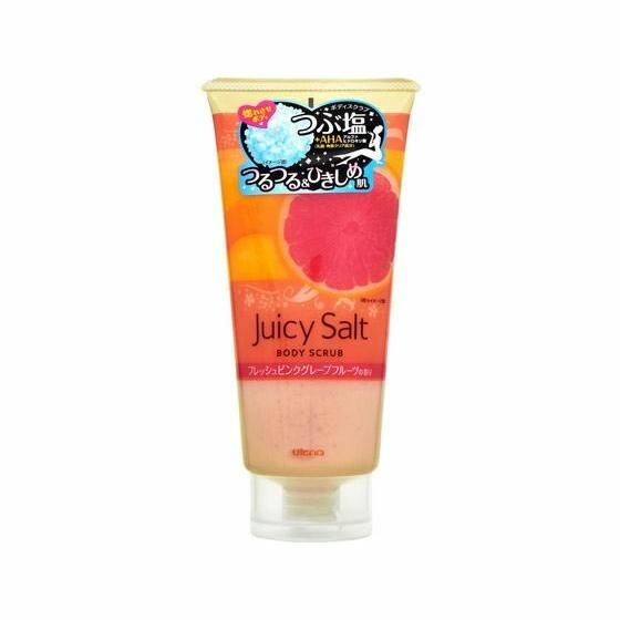 Скраб для тела на основе соли увлажняющий Япония, Utena Juicy Salt 300 мл от целлюлита и отеков с ароматом розового грейпфрута