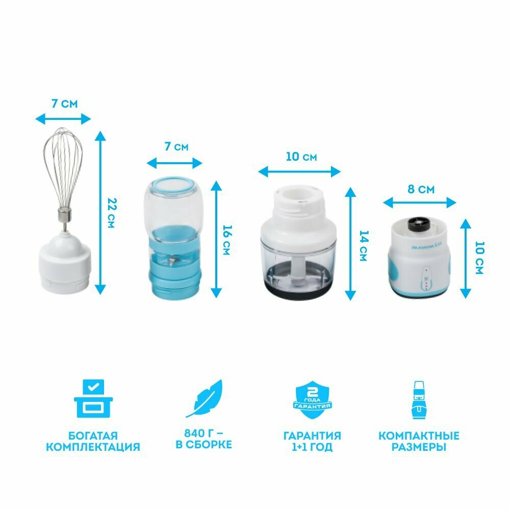 Погружной блендер 3 в 1, 2 скорости, мощность 800 Вт, небесно-голубой