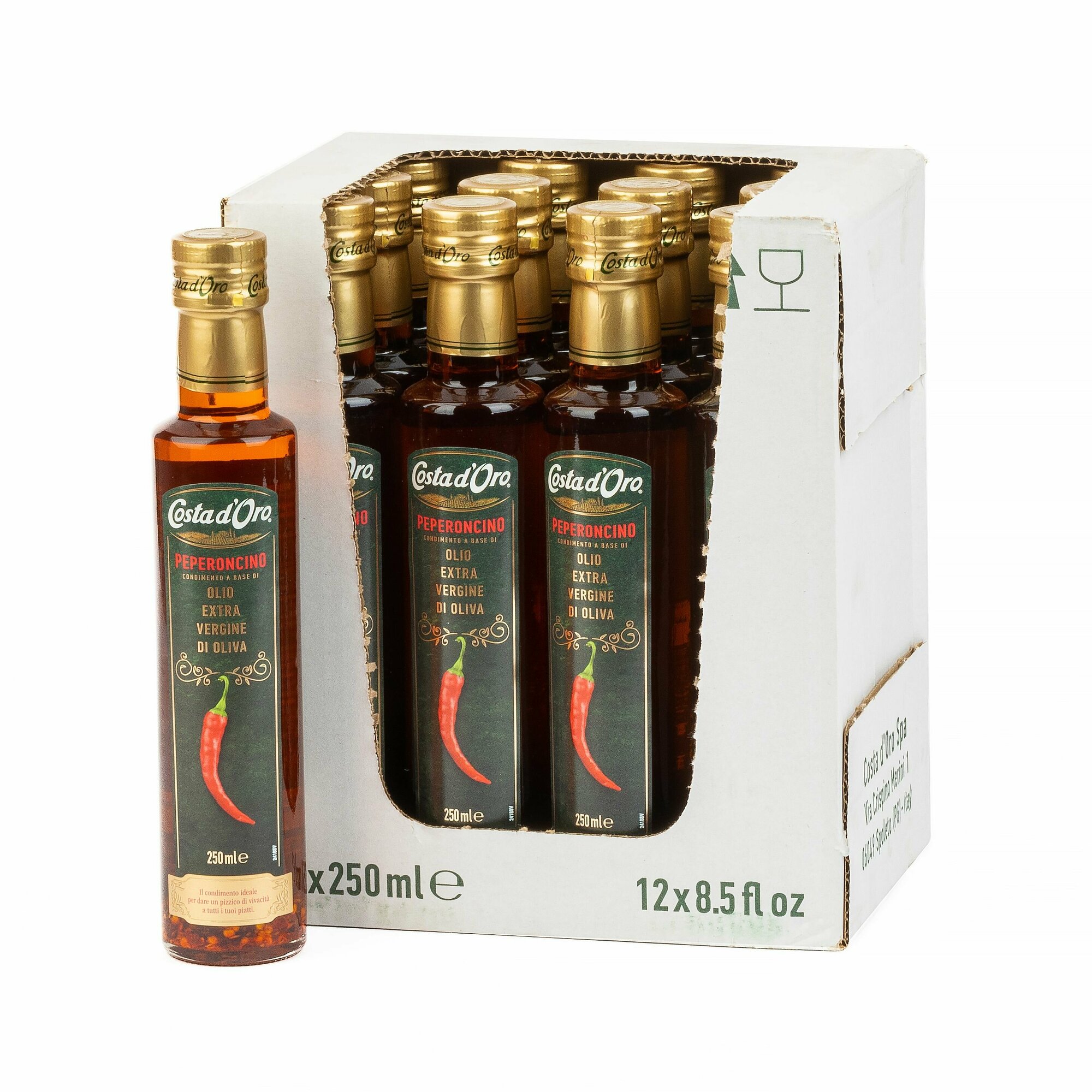 Масло оливковое COSTA D'ORO Extra Virgin нерафинированное высшего качества со вкусом и ароматом перца чили 250 мл стеклянная бутылка