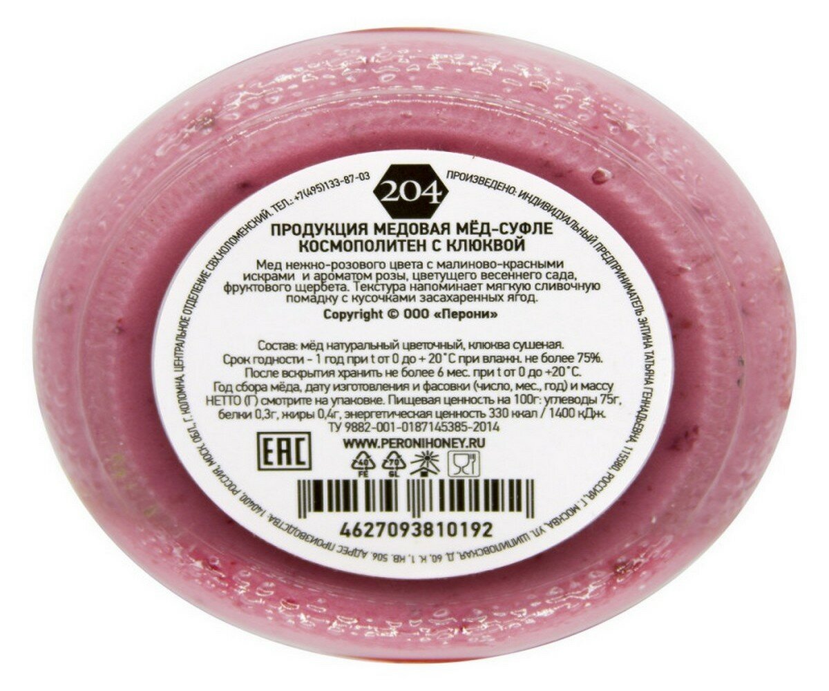 Мед-суфле Peroni-honey 250г №204 коктейль Космополитен с клюквой , 1 шт.