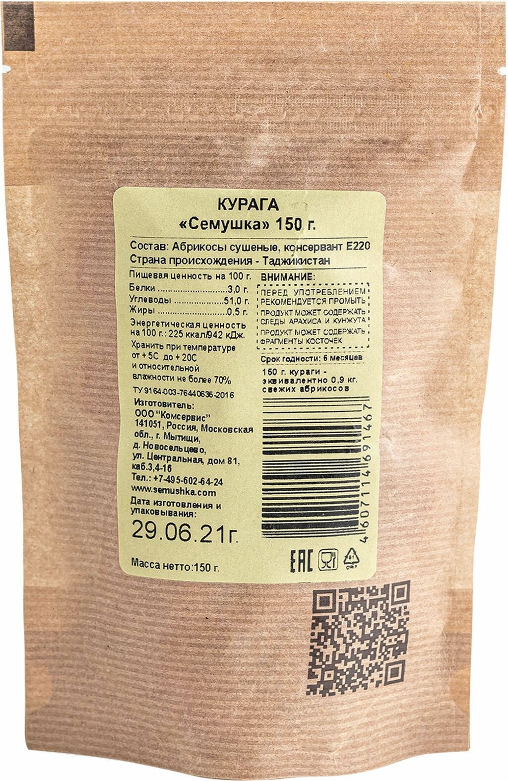 Курага семушка 150г интересное: