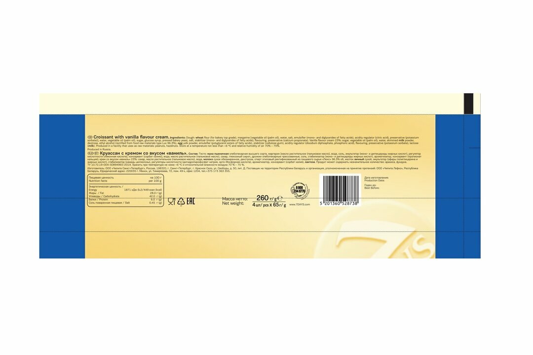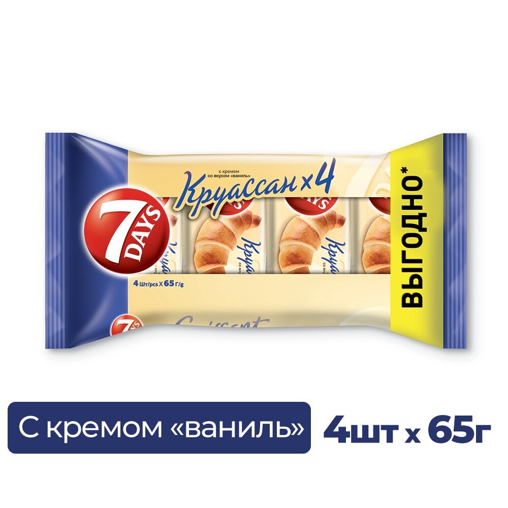 Круассан, "7Days", с ванильным кремом, 65г 4 шт