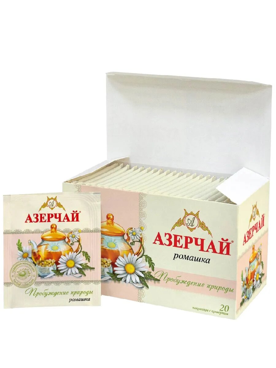 СохранитьЧай в пакетиках зеленый Азерчай Пробуждение природы, с ромашкой, 20 шт, в сашетах интересное: