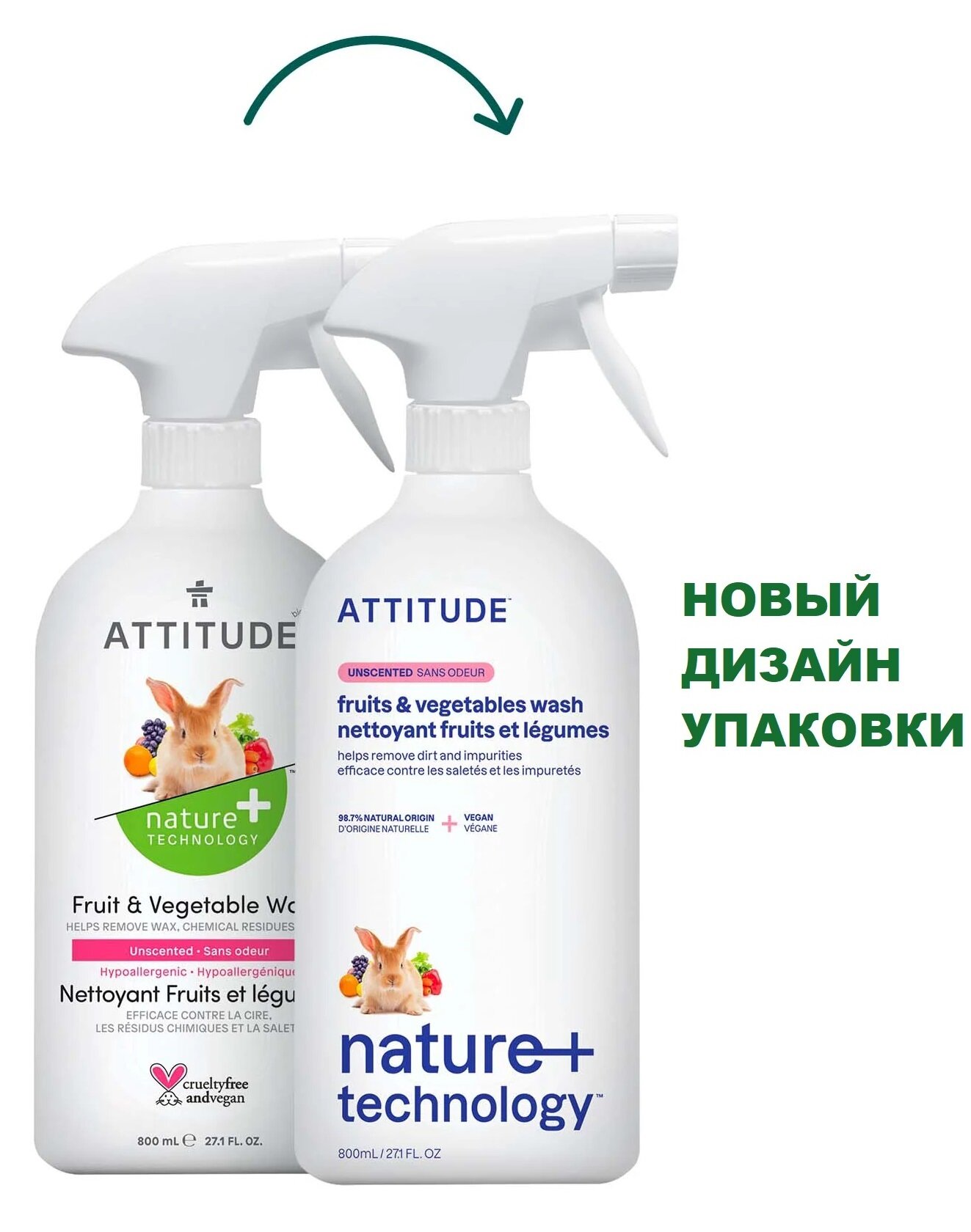 ATTITUDE Средство для мытья фруктов и овощей с дозатором, 0.8 л