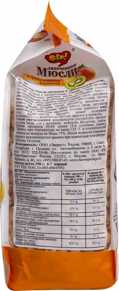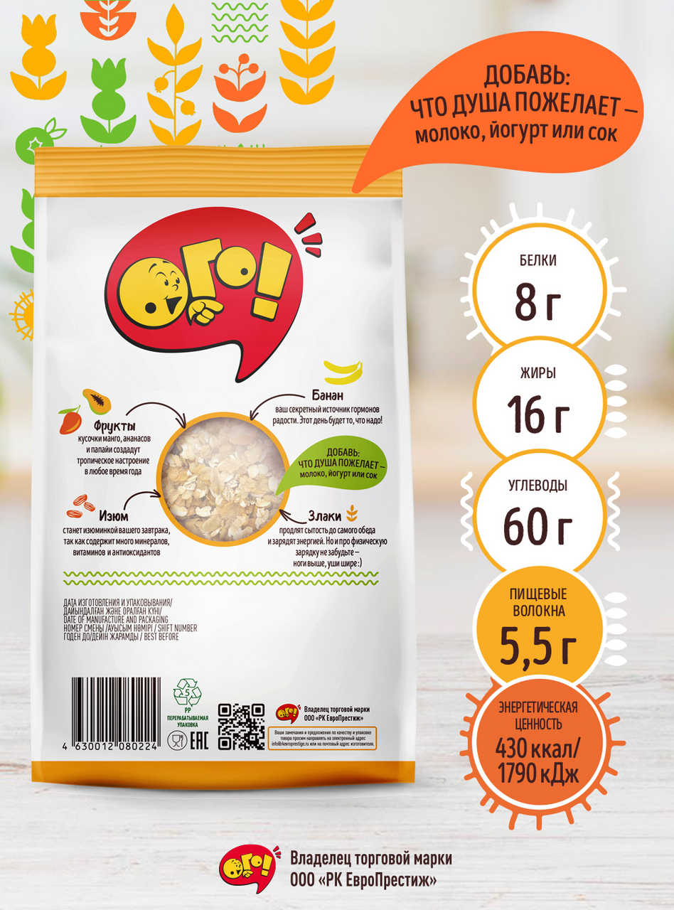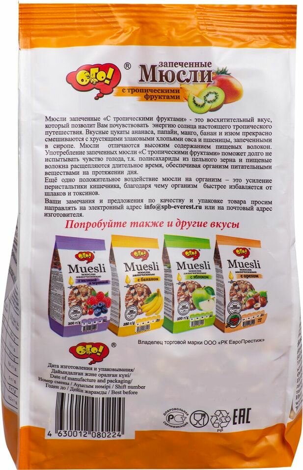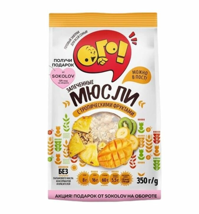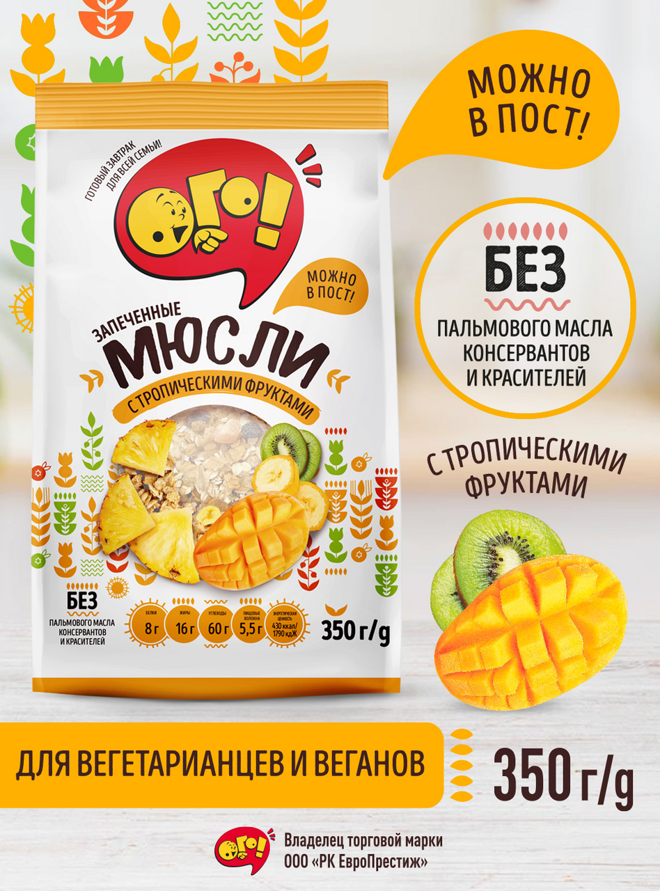 Мюсли запеченные ОГО! с тропическими фруктами, 350г интересное: