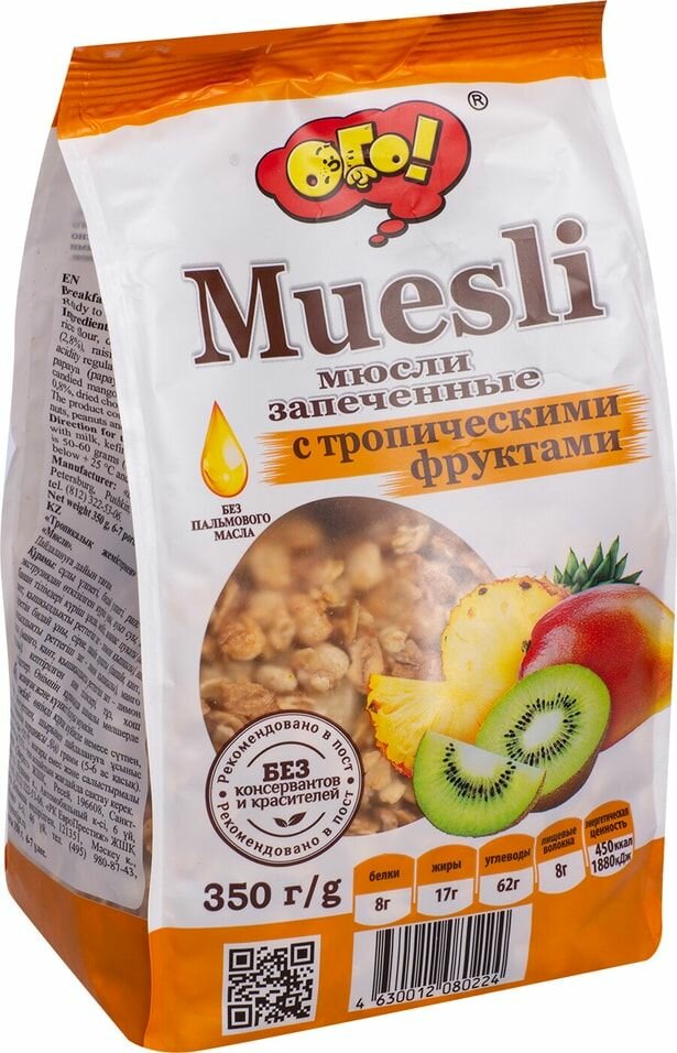 Ниже Вы можете прочитать отзывы на Мюсли запеченные ОГО! с тропическими фруктами, 350г, ознакомится с подробными характеристиками, посмотреть интересные обзоры и фотографии на Мюсли запеченные ОГО! с тропическими фруктами, 350г.