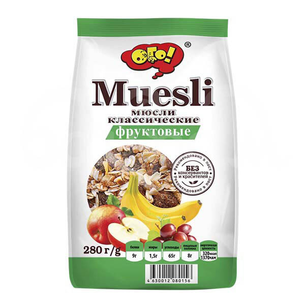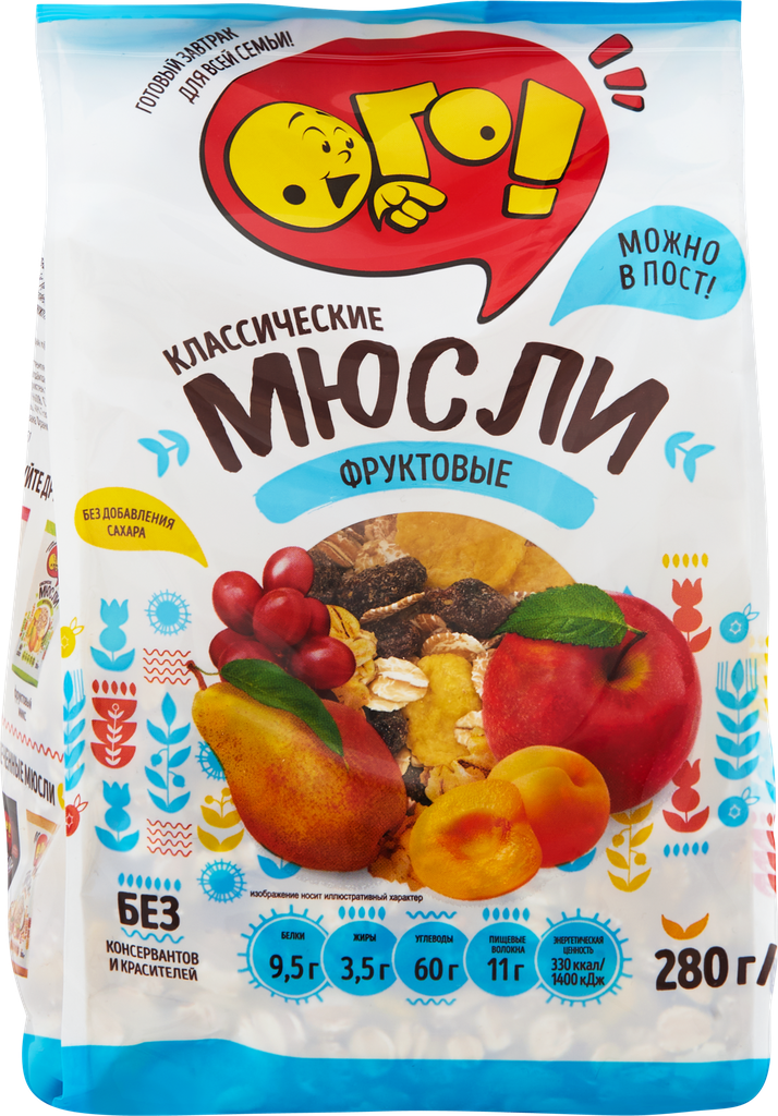 Мюсли ОГО! Фруктовые, 280г интересное: