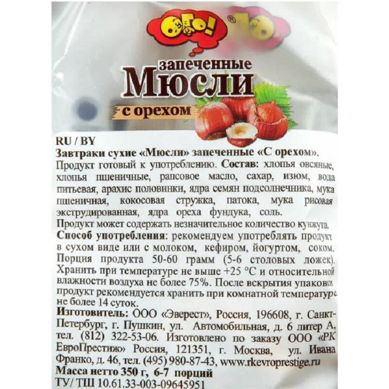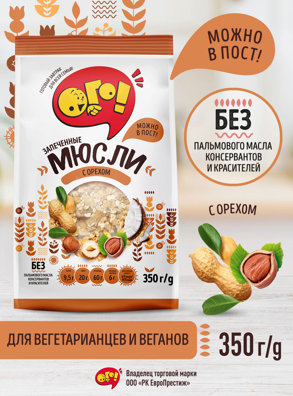 Мюсли запеченные ОГО! с орехом, 350г интересное: