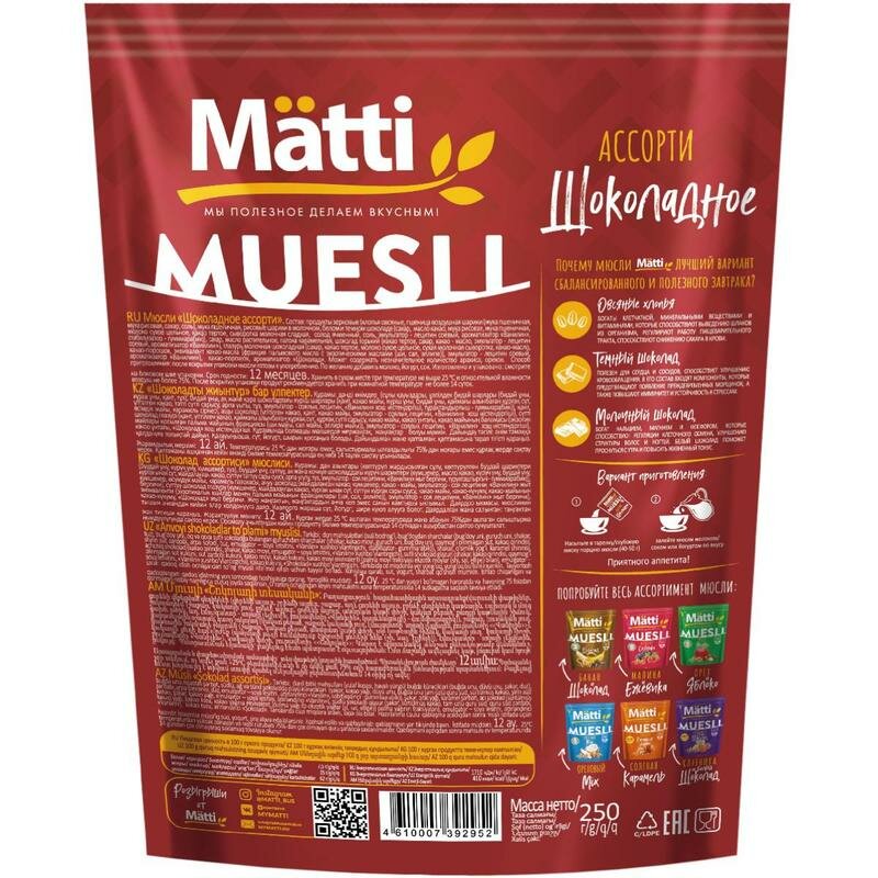 Мюсли Matti шоколадное ассорти 250 г интересное: