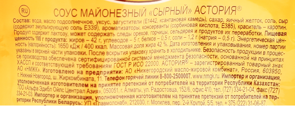 Соус майонезный астория Сырный 42%, 233г интересное: