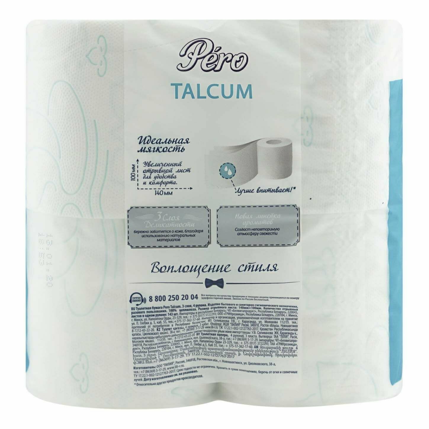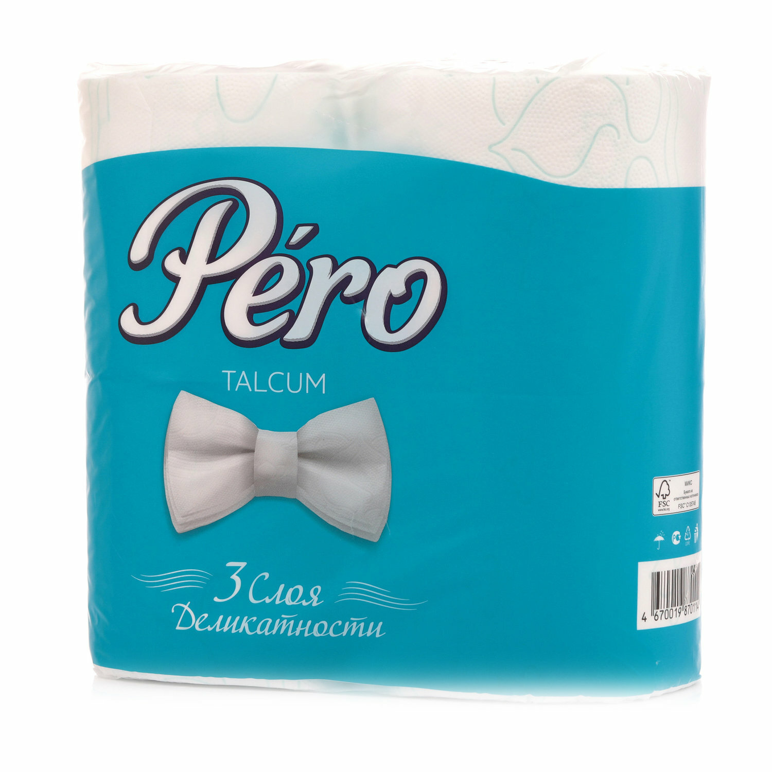 Туалетная бумага Pero Talcum 3 слоя белый цвет 4 упаковки по 4 рулона интересное: