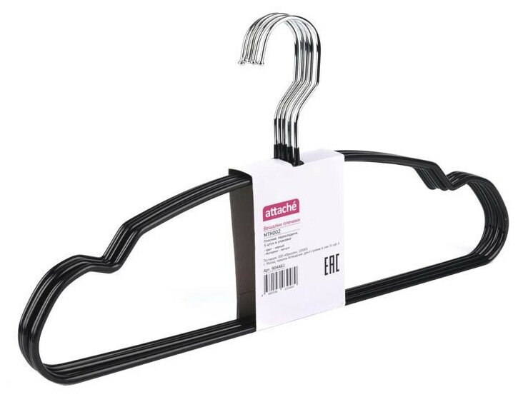 Вешалка-плечики Attache MHT002 черная (5 штук в упаковке), 904461