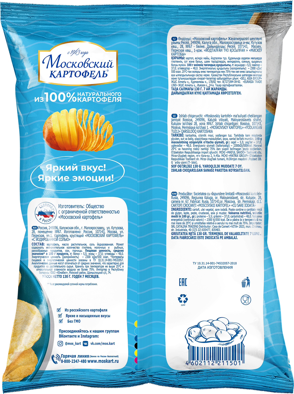 Картофельные чипсы Московский картофель с йодированной солью, 130 гр интересное: