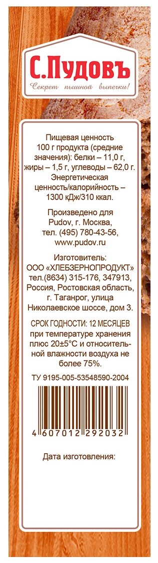 Смесь для выпечки С.Пудовъ Дарницкий хлеб 500г интересное: