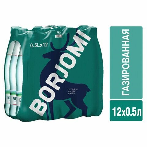 Минеральная вода Borjomi газированная, стекло, 12 шт. х 0.5 л