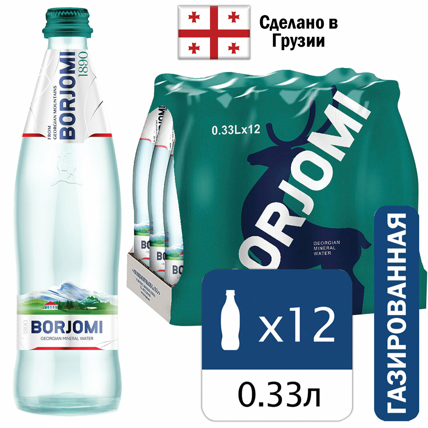 Минеральная вода Borjomi газированная, стекло, 12 шт. по 0.33 л