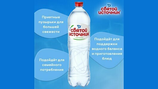 Ниже Вы можете прочитать отзывы на Вода питьевая святой источник газированная, 1.5л, ознакомится с подробными характеристиками, посмотреть интересные обзоры и фотографии на Вода питьевая святой источник газированная, 1.5л.