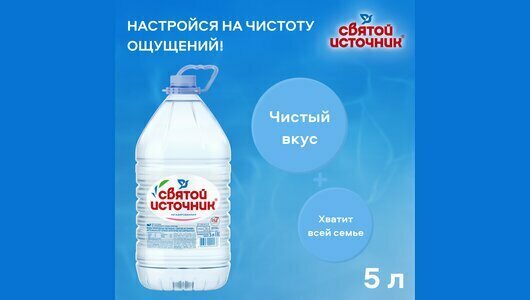 Питьевая вода святой источник, негазированная, 5 л