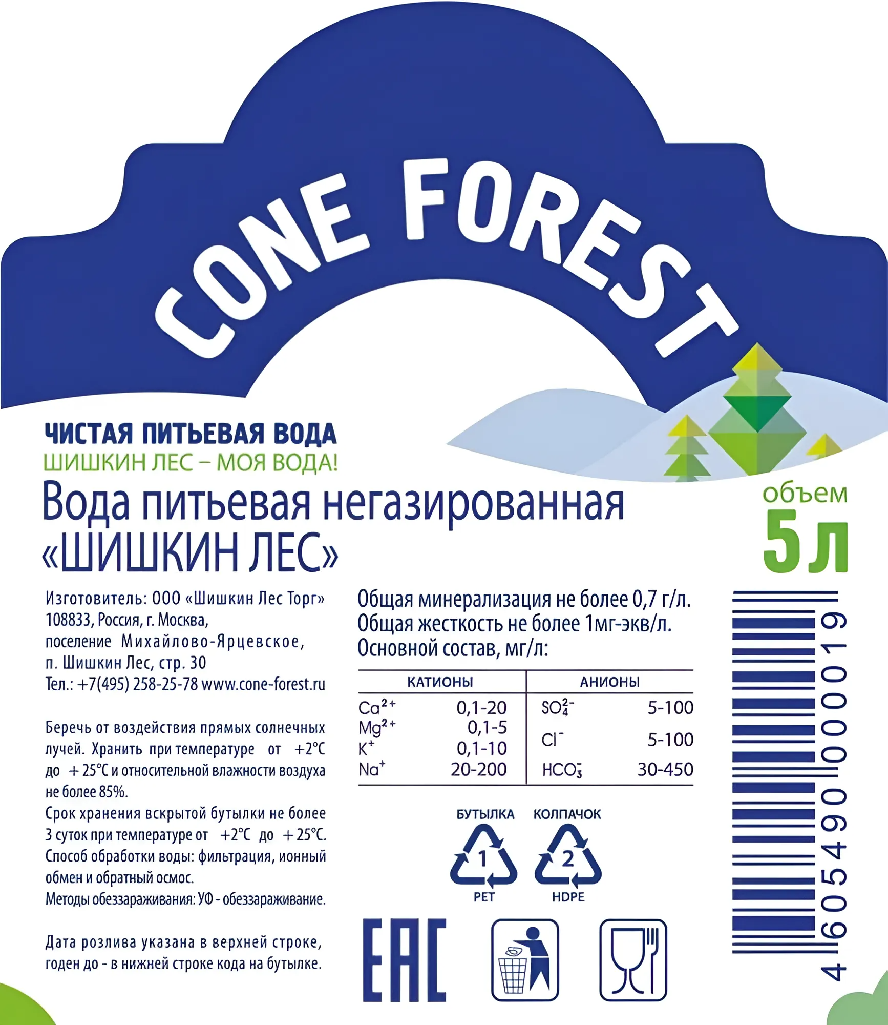 Вода питьевая шишкин ЛЕС негазированная, 5л