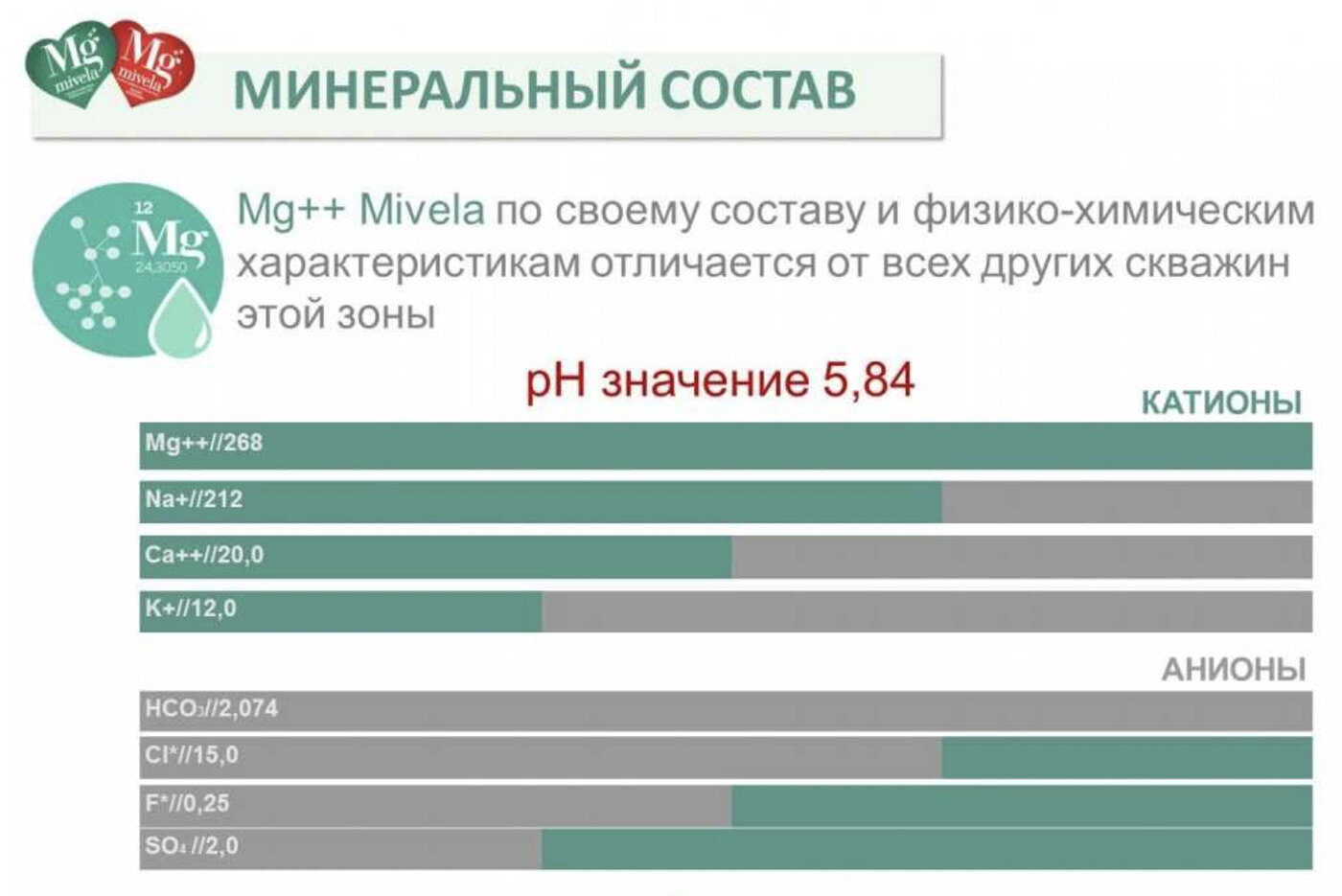 | Минеральная вода | гидрокарбонатная магниево-кальциевая |