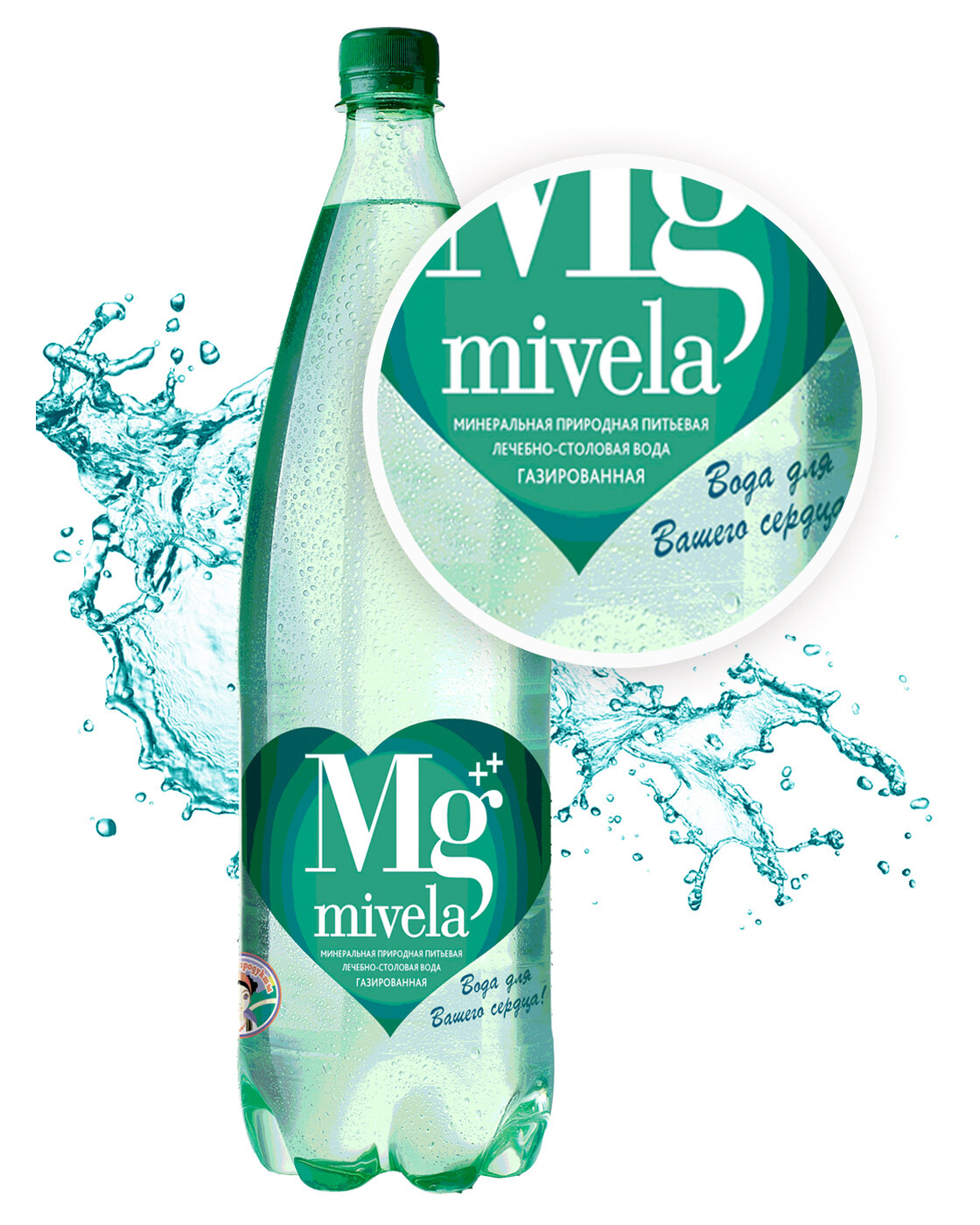 Вода минеральная Mivela Mg++ газированная, ПЭТ, 1 л