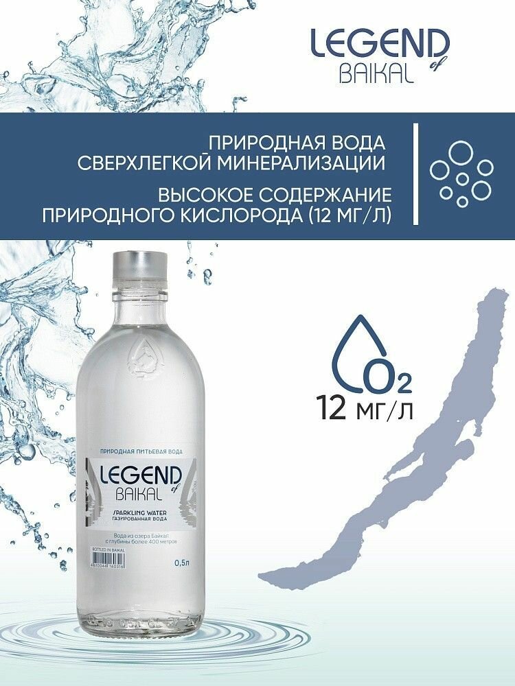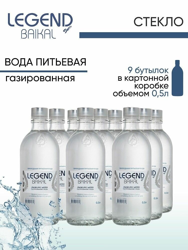 Купить Вода природная питьевая Legend of Baikal (Легенда Байкала) 0,5 л х 9 бутылок, газ стекло