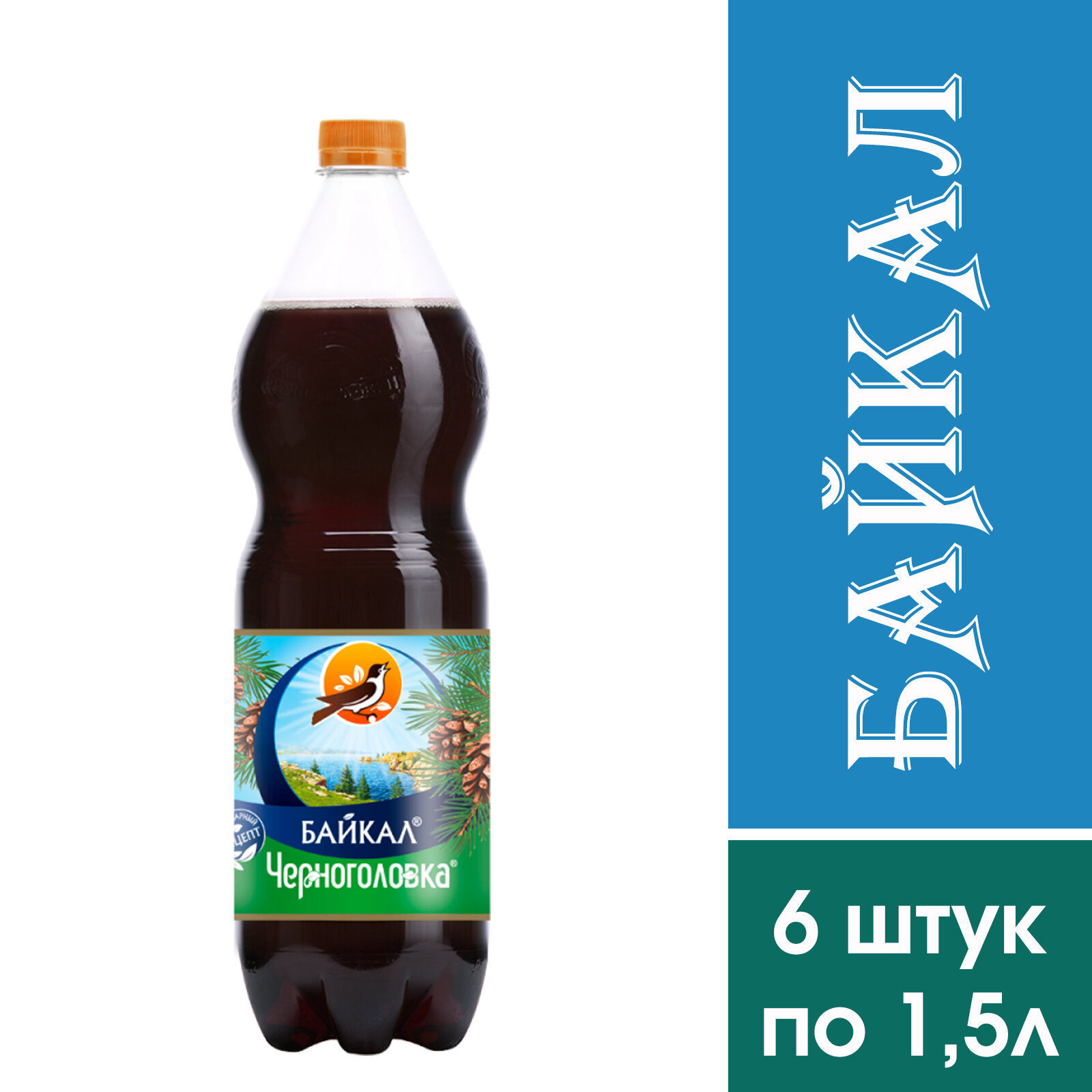 Купить Газированный напиток "Байкал" Черноголовка, 6 штук по 1,5 литра.