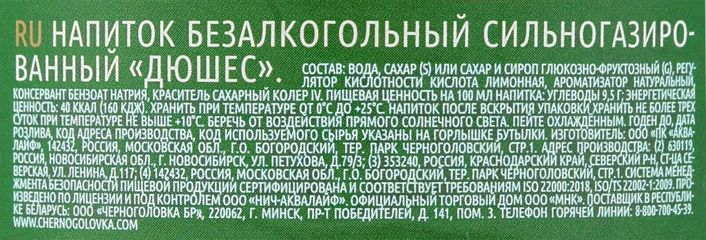 Газированный напиток напитки из черноголовки дюшес, 1л