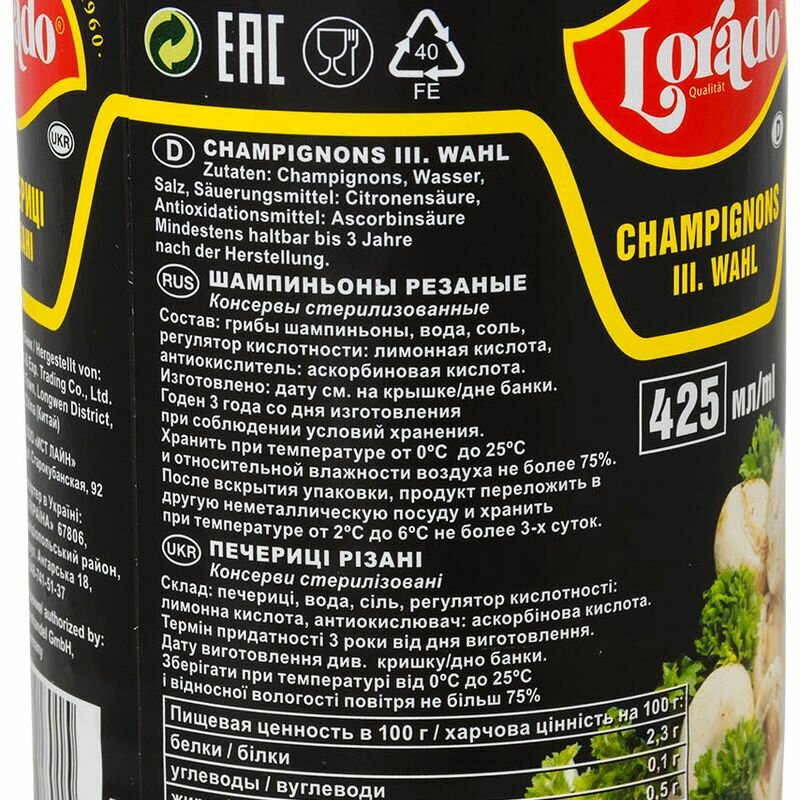 Грибы шампиньоны резаные, Lorado, 1 шт. по 425 мл