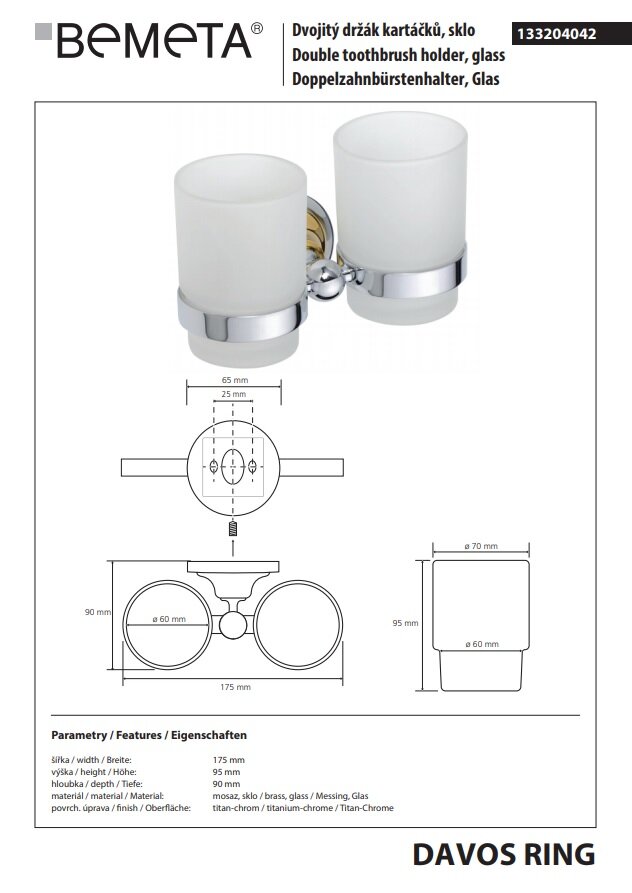 Стакан для зубных щеток Bemeta Retro 144110027 двойной