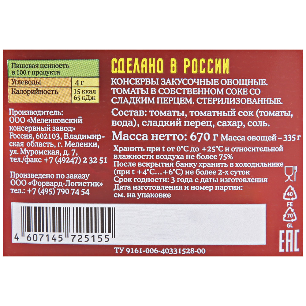 Ниже Вы можете прочитать отзывы на Томаты в собственном соку лукашинские со сладким перцем, 670г, ознакомится с подробными характеристиками, посмотреть интересные обзоры и фотографии на Томаты в собственном соку лукашинские со сладким перцем, 670г.
