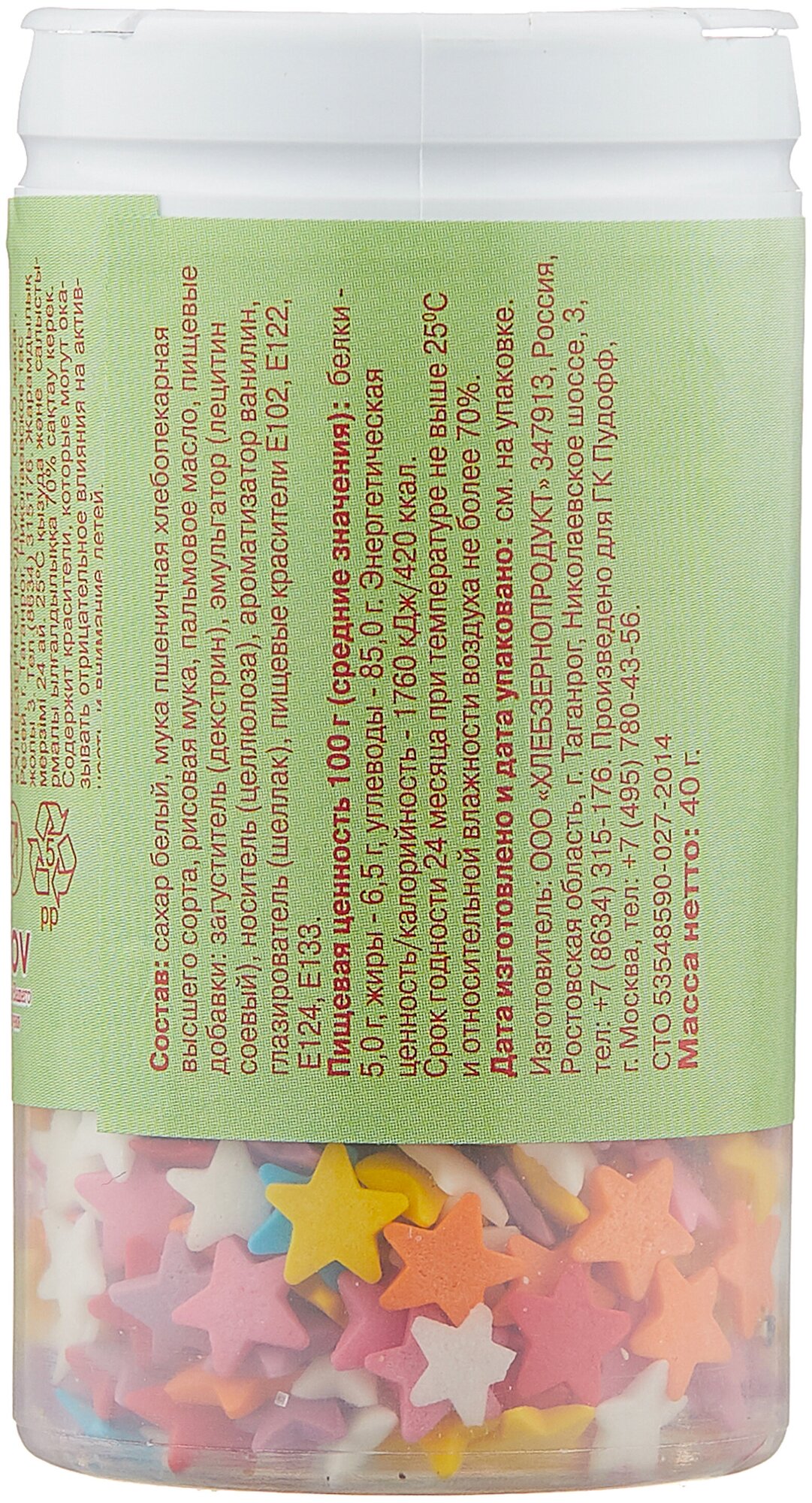 Посыпка кондитерская С.Пудовъ Звезды разноцветные 40г интересное: