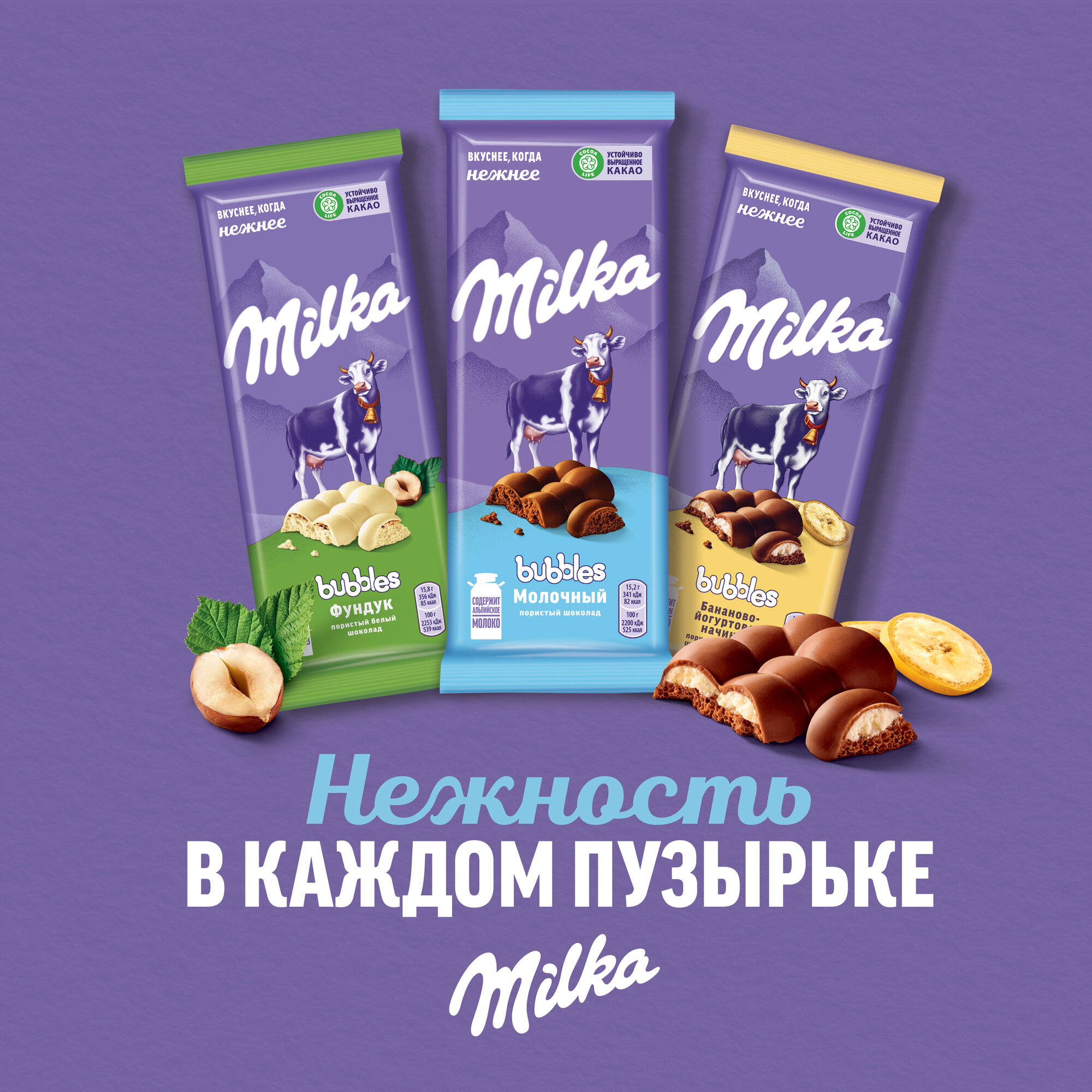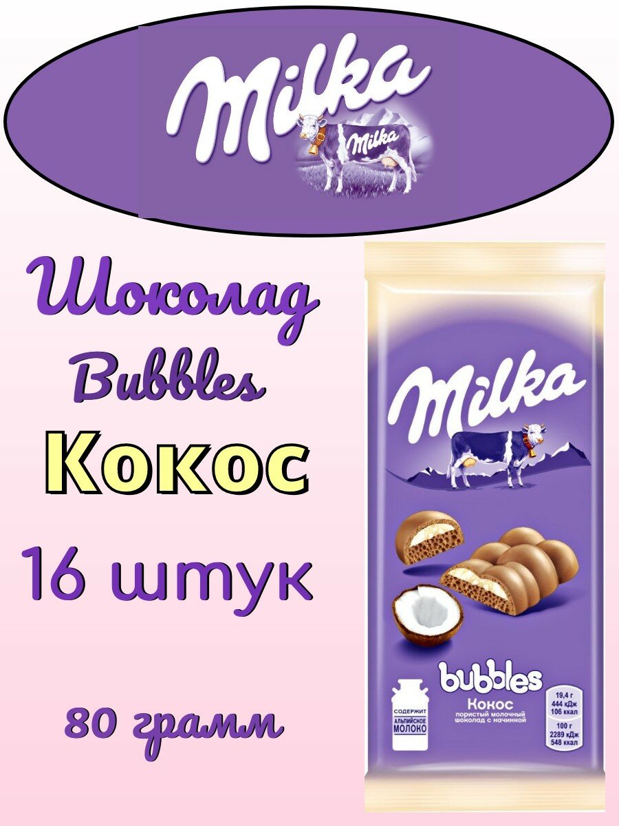 Шоколад Milka Bubbles молочный пористый c кокосовой начинкой, 92г интересное: