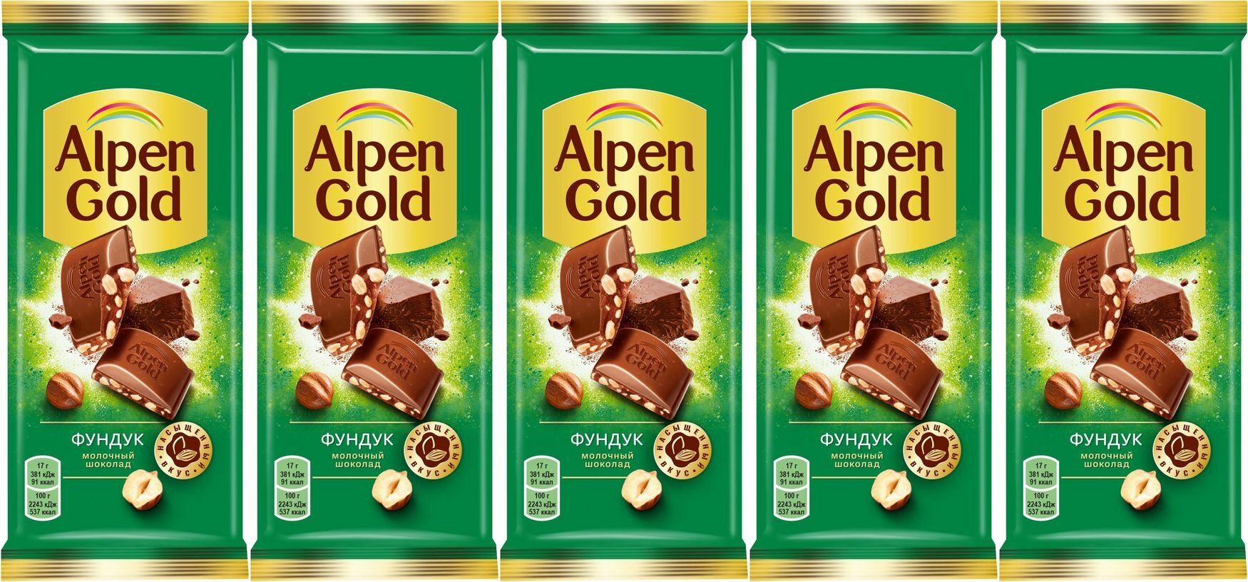 Шоколад Alpen Gold молочный с фундуком, 85 г, 21 уп., 21 шт. в уп.