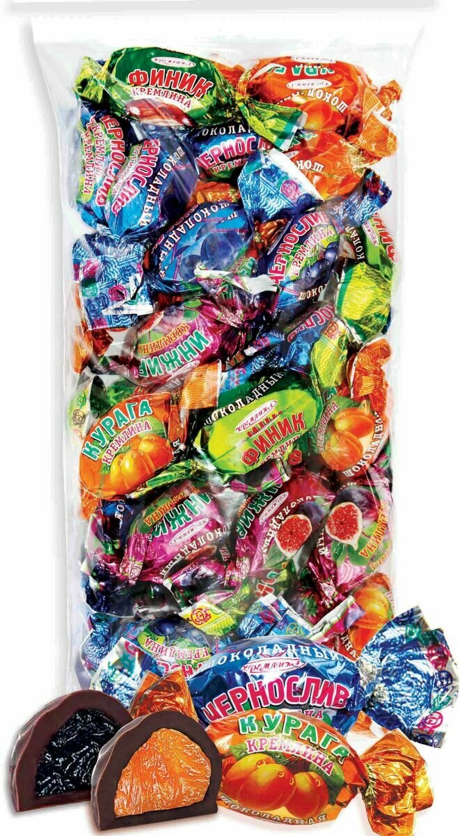 Кремлина Конфеты микс фрукты шоколадные (Ассорти конфет Чернослив, Курага, Финик и Инжир), 1 кг