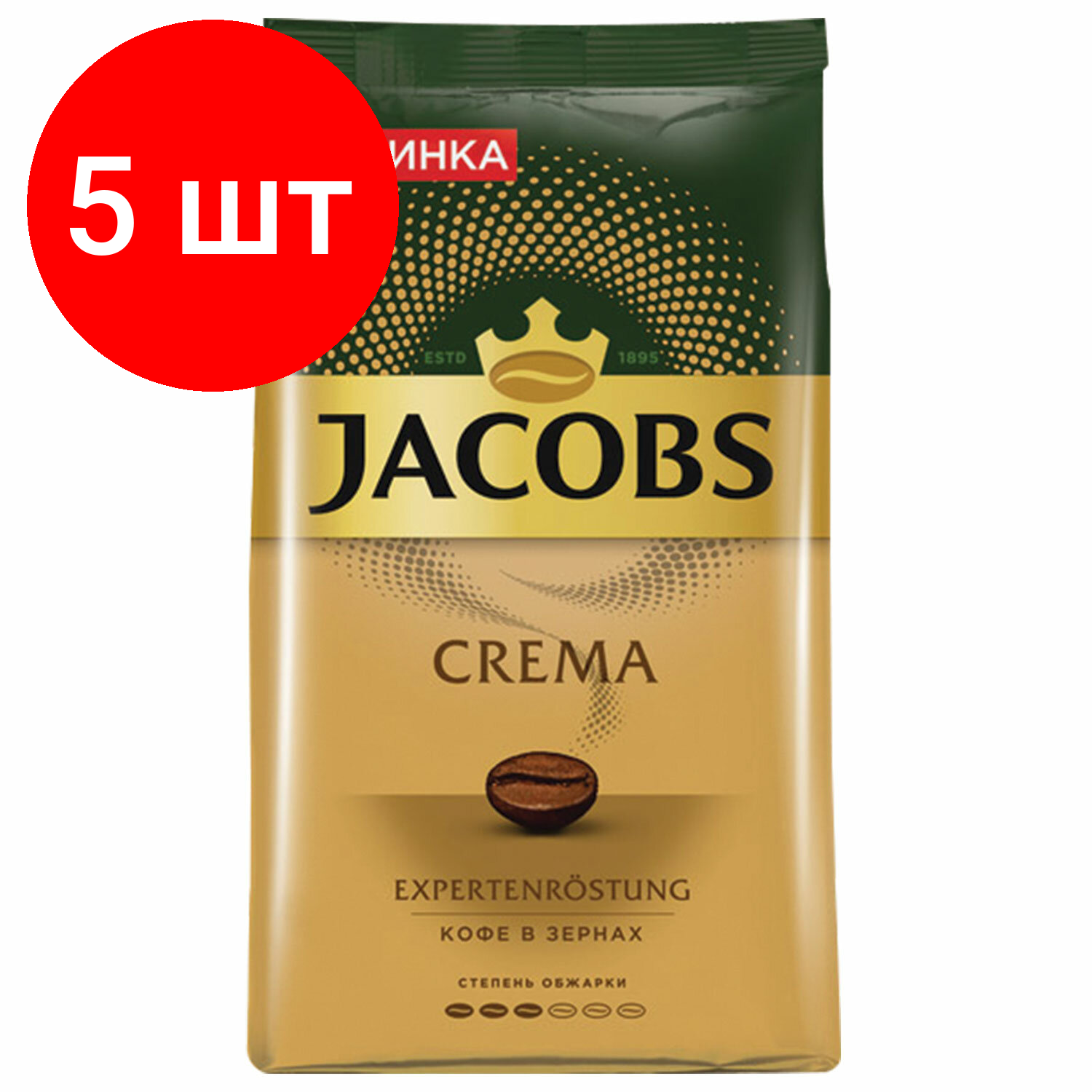 Купить Комплект 5 шт, Кофе в зернах JACOBS "Crema", 1000 г, вакуумная упаковка, 8051592