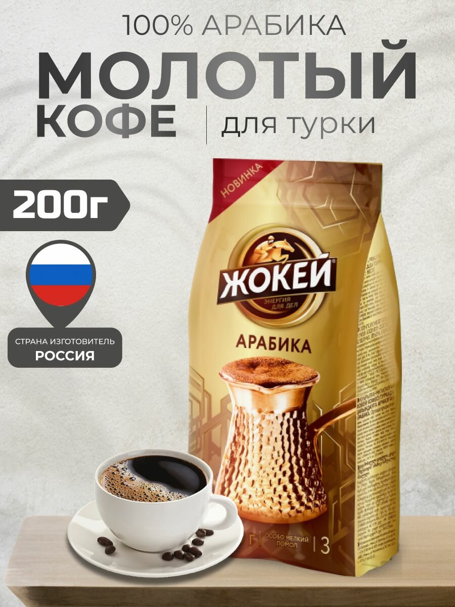 Кофе молотый Жокей Для турки, 200 г, пакет с клапаном
