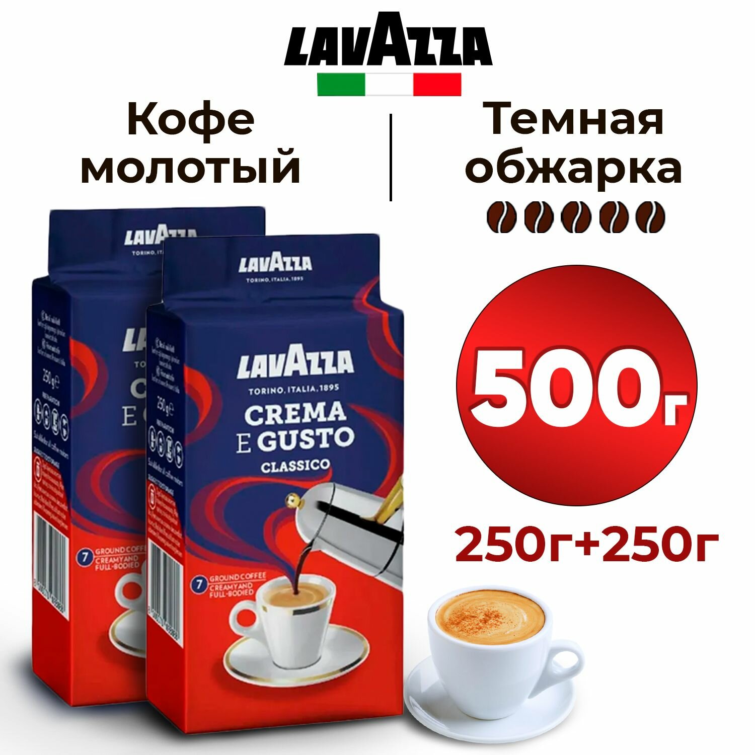 Lavazza Кофе молотый Crema e Gusto 2 уп. по 250гр. (500гр.)