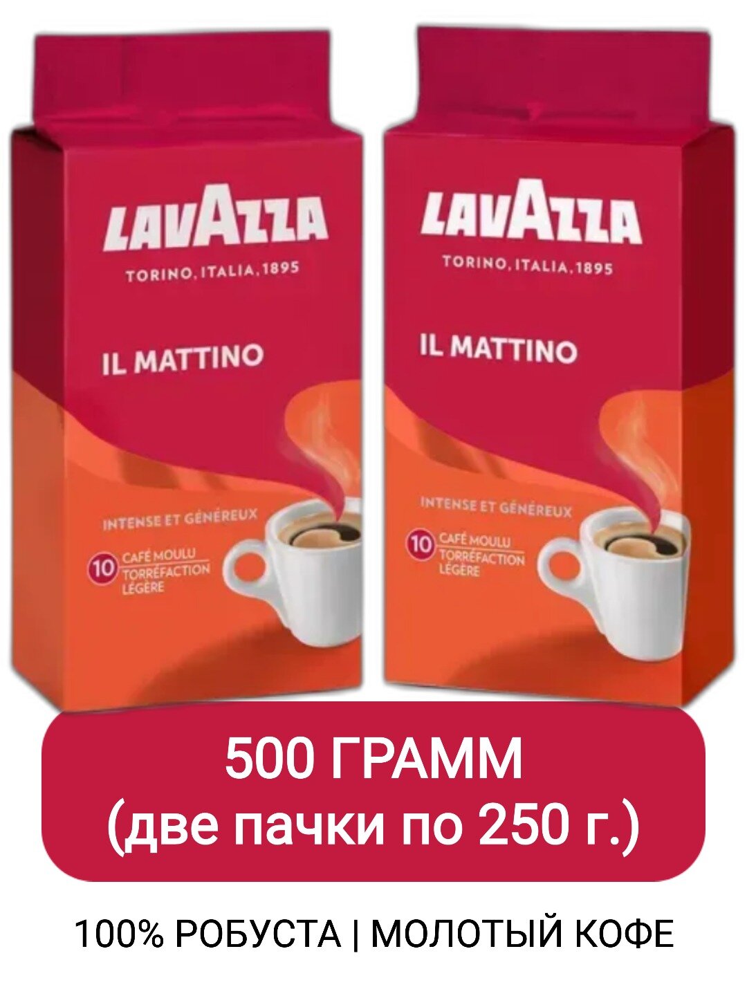 Кофе молотый Lavazza Mattino 250 г, вакуумная упаковка, 2 шт.