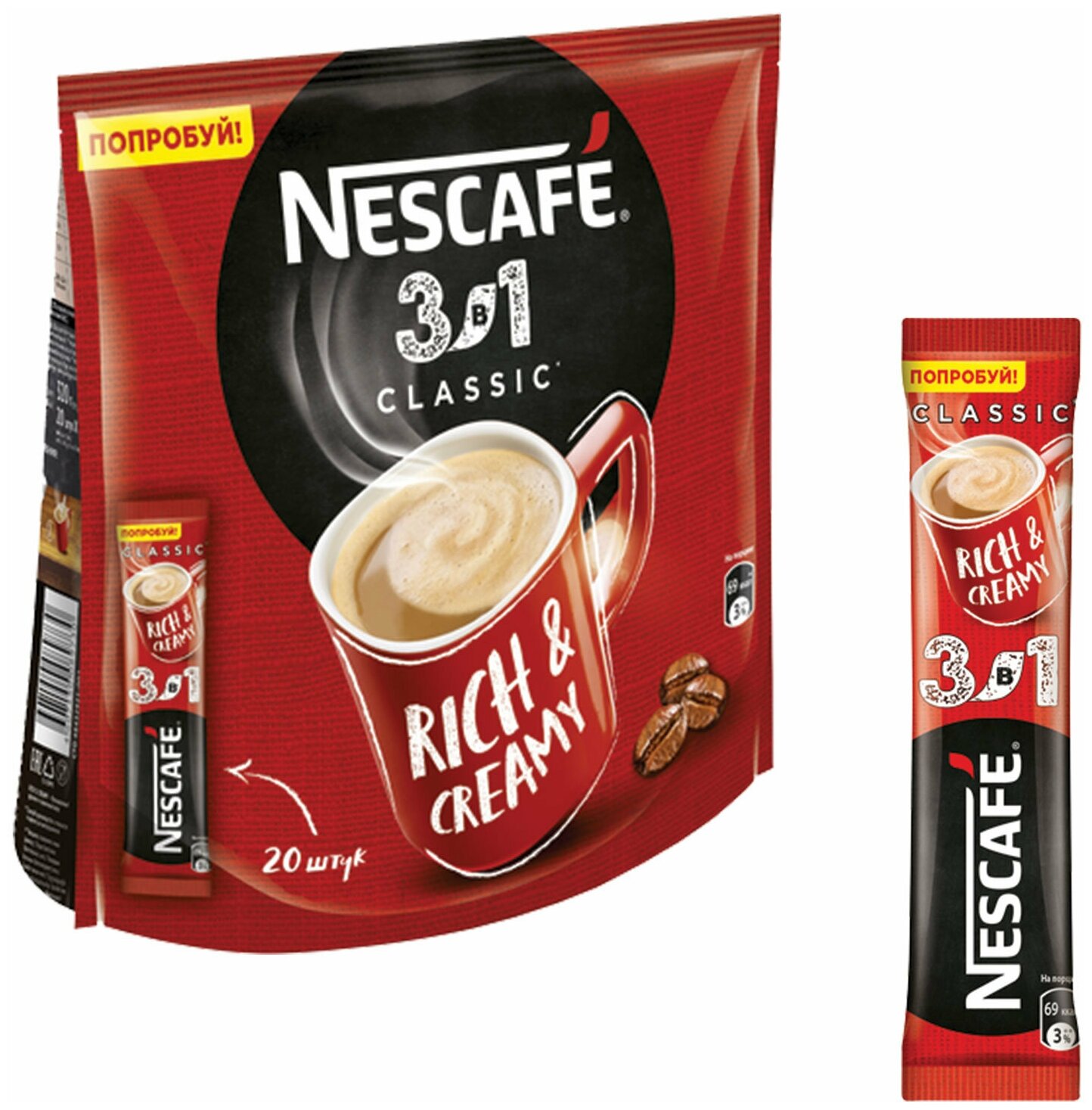 Кофе растворимый Nescafe Classic 3 в 1, 20 стиков (Нескафе)