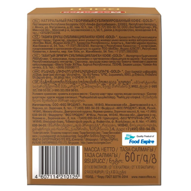 Купить Кофе растворимый порционный MacCoffee Gold, сублимированный 2гх30 шт/уп