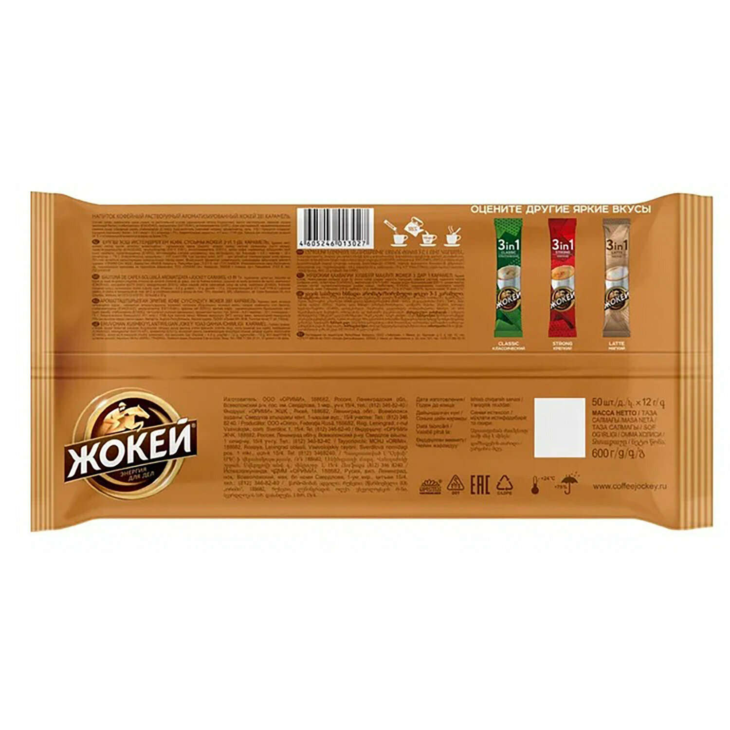Растворимый кофе Жокей Карамельный 3 в 1, в стиках, 50 уп., 600 г