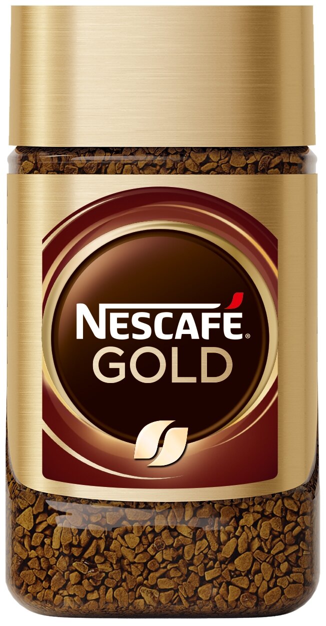 NESCAFÉ® Gold, 100% натуральный растворимый сублимированный кофе с добавлением жареного молотого кофе, 190г, стеклянная банка