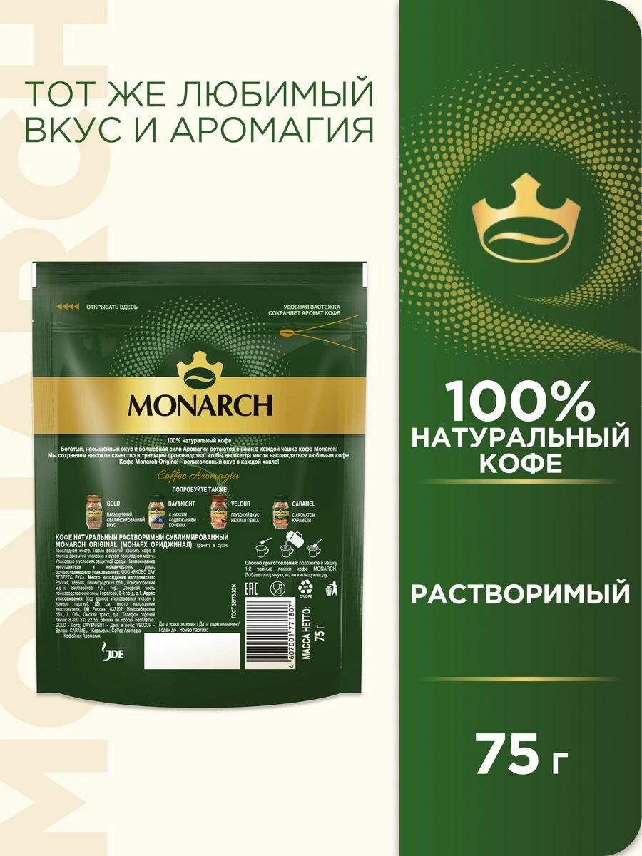 Кофе растворимый Jacobs Monarch, сублимированный, дой-пак, 75 г