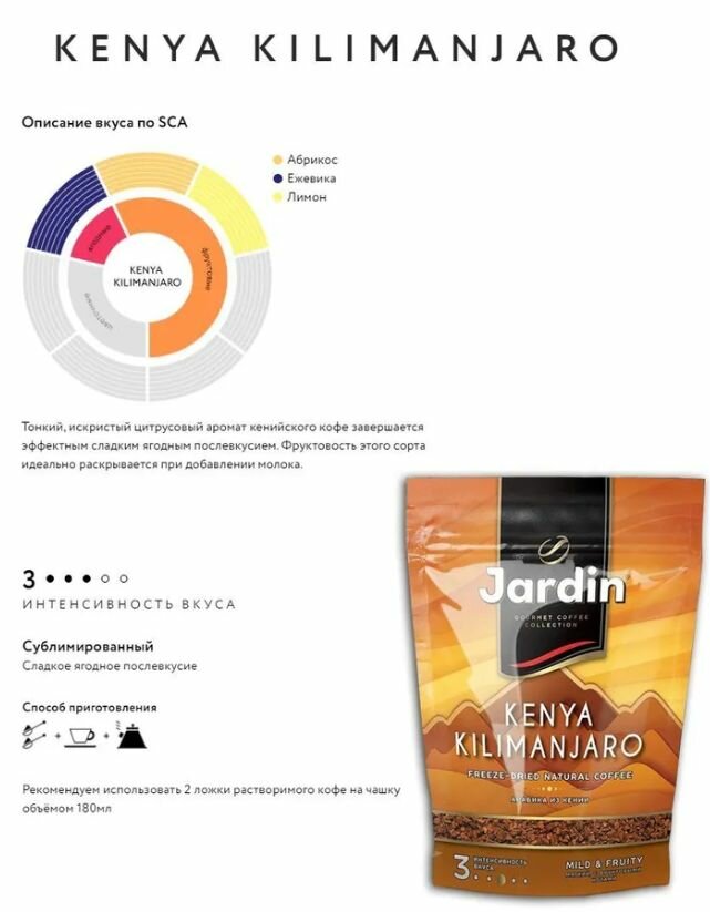 Ниже Вы можете прочитать отзывы на Кофе растворимый Jardin Kenya Kilimanjaro, 150 гр - 2 шт, ознакомится с подробными характеристиками, посмотреть интересные обзоры и фотографии на Кофе растворимый Jardin Kenya Kilimanjaro, 150 гр - 2 шт.