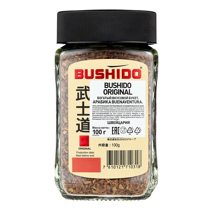 Кофе растворимый Bushido Original, 100 г стеклянная банка (Бушидо)