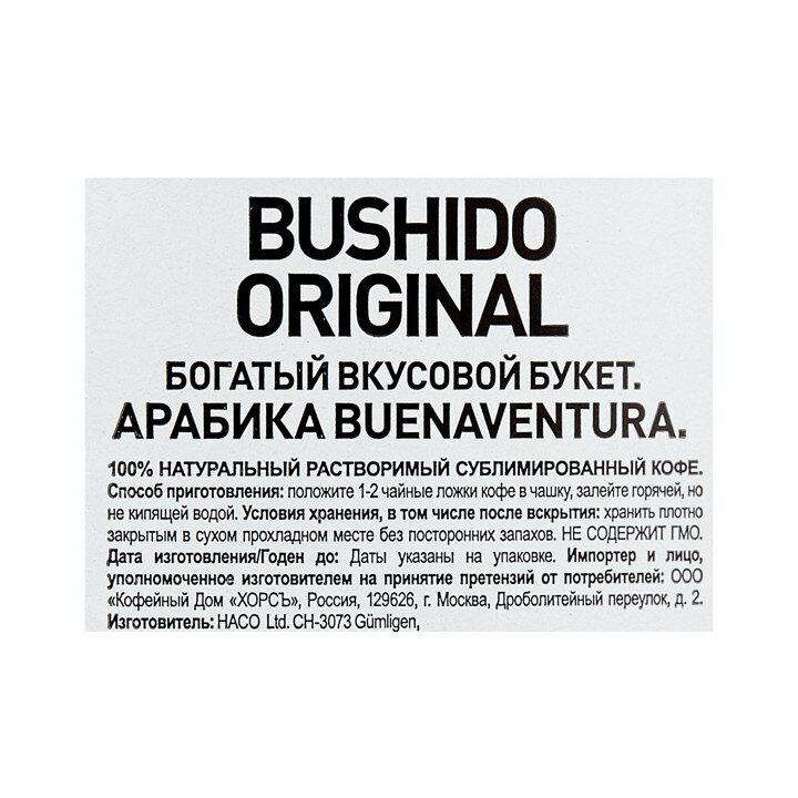 Кофе Bushido Original растворимый, 100 гр, 2 уп