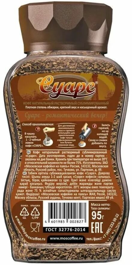 Кофе растворимый Московская кофейня на паяхъ Суаре, стеклянная банка, 95 г